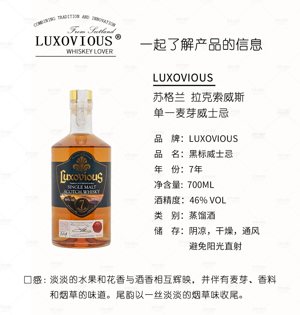 拉克索威斯黑標威士忌,麥芽釀造,橡木桶陳釀,匠心工藝,將豐富的口感融于酒中。